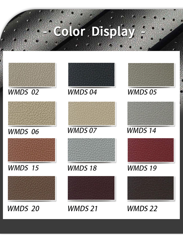 Ce cuir synthétique anti-rayures résout ce problème grâce à une âme en polymère haute densité renforcée, offrant une résistance aux rayures de niveau 3 ANSI – résistant aux éraflures des chaussures, des talons et des roulettes de valise. Sa surface est traitée avec un revêtement dur et flexible qui résiste aux rayures sans se fissurer ni s'écailler, même après des milliers d'utilisations. Contrairement aux protections en plastique rigide, souvent encombrantes et peu esthétiques, ce cuir synthétique présente une texture haut de gamme, semblable au cuir, qui s'intègre parfaitement à l'intérieur de la voiture. Résistant aux taches, il repousse la saleté, la boue et les traces de chaussures pour un nettoyage facile, et est hydrofuge, résistant à l'humidité des chaussures mouillées. Facile à découper et à personnaliser, il s'adapte à toutes les tailles et formes de seuils de porte et est compatible avec tous les procédés de fabrication de protections de seuil de porte – y compris le collage, le bordage et le gaufrage de logos. Conforme aux normes internationales pour l'intérieur automobile, ce cuir synthétique anti-rayures est le choix idéal pour les fabricants de protections de seuil de porte haut de gamme et durables.